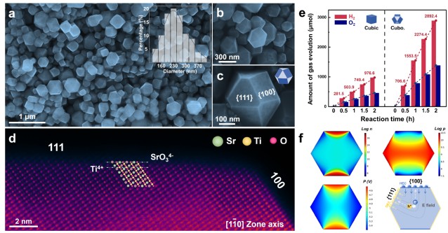 近日,我校材料科学与工程学院清洁能源材料与器件团队在光分解纯水制氢材料晶面结构设计与创制方面取得新进展,以晶态氧化物SrTiO3为模型材料,在固相合成体系中可控制备出大比例暴露优势晶面的高质量单晶催化剂。相关成果以“Crystal Facet Engineering on SrTiO3 Enhances Photocatalytic Overall Water Splitting”为题在线发表在《美国化学会志》(J. Am. Chem. Soc.)上。