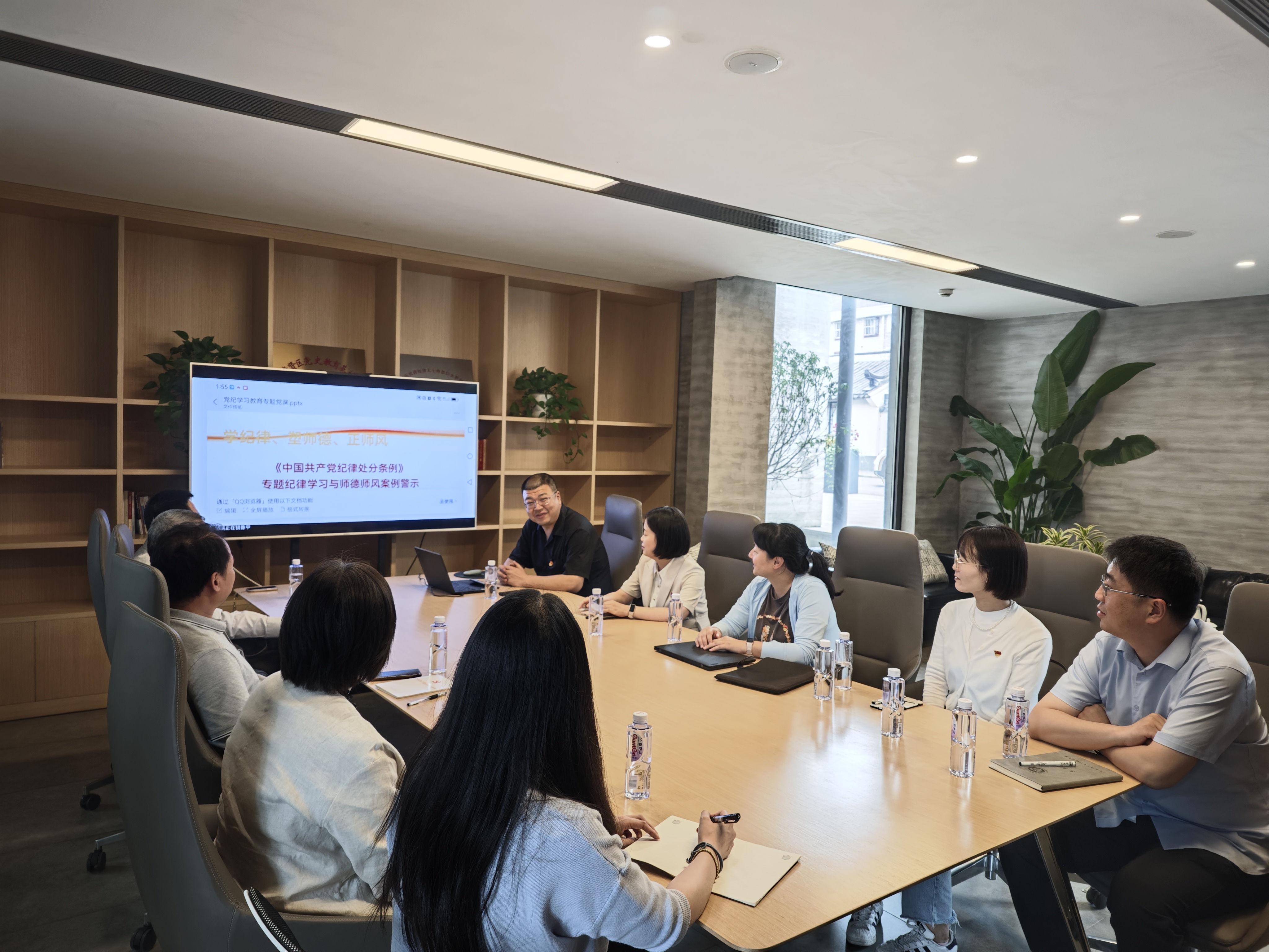 参观结束后,党委副书记、院长何雪松与教师党员和青年教师深入交流,要求以党纪学习教育为契机,深入学习、主动作为,将学习成果和积极实践融入学校建设和学院发展大局中;党委副书记、纪委书记储琰以“学纪律、塑师德、正师风”为题为教师党员上纪律党课、与青年教师分享交流,从《中国共产党纪律处分条例》的修订背景展开,共同学习分享《条例》总则、主旨要义以及章节内容,同时结合师德师风典型案例,就严守各项纪律、勇于担当作为、严守师德师风与教师共勉。
