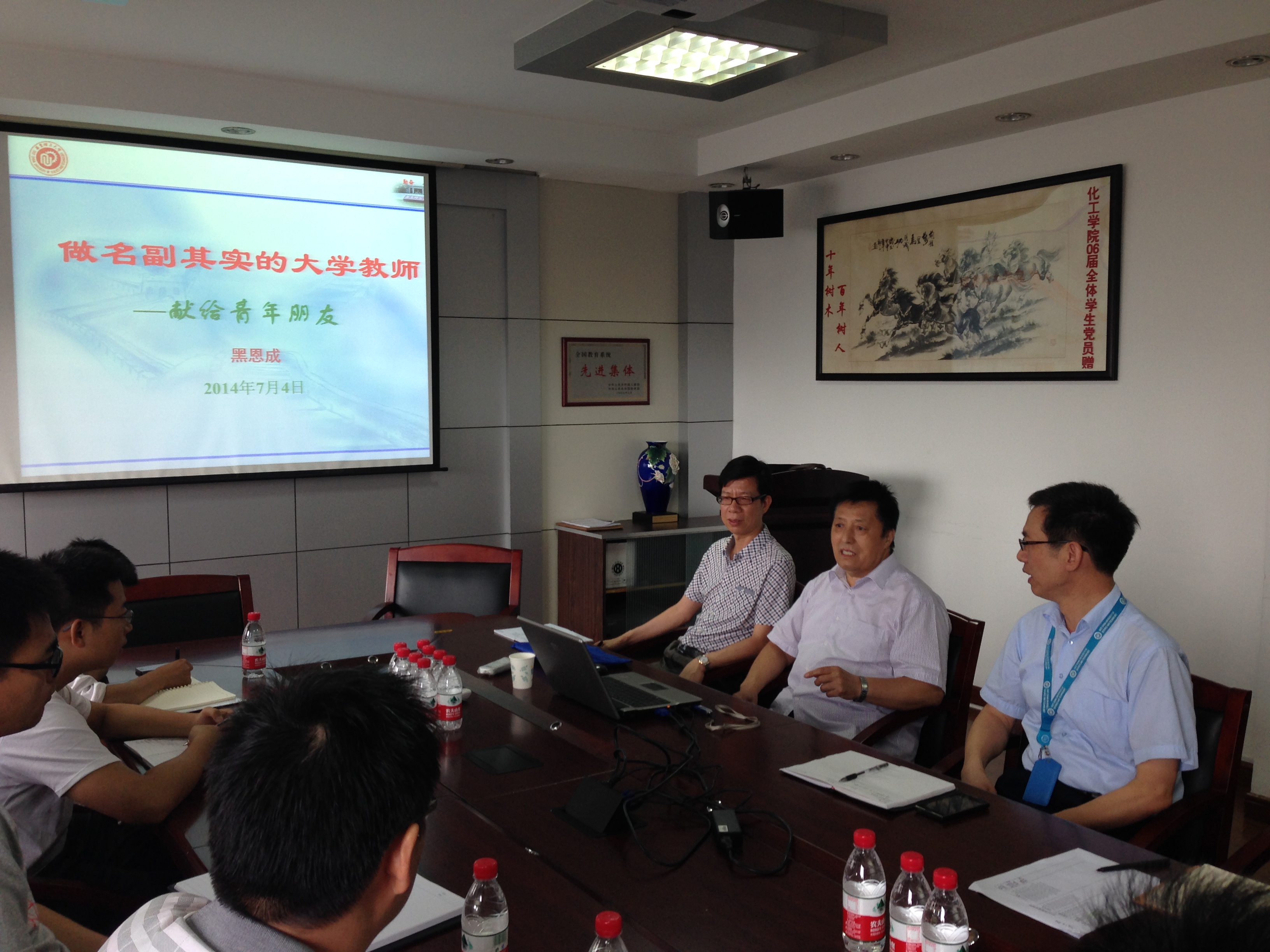 会议的主要内容是黑恩成教授关于《做名副其实大学教师》的专题演讲。黑老师作为我校国家级教学名师之一,从事《物理化学》教学长达44年之久,讨论会上,他将自己从教40多年的经验和思考提炼为三点内容,一一向在座的各位老师进行讲解和阐述。黑老师认为,“教师”称呼来源于学生,做学生口中心中的好教师才是检验自身教学能力的最高标准。教师教学应该渗透真情,与学生交朋友,从关爱学生的角度出发开展育人工作。同时课程内容设置也要以学生为本,以培养学生能力为前提组织教学内容。针对如今课堂上学生注意力不集中的现象,黑老师以《物理化学》授课内容为例,教导青年教师如何做到课堂上循循善诱,心心相通,做到授课饱含深情,朴实而有寓意,拨动听课学生心弦,从而达到教学的最好效果。