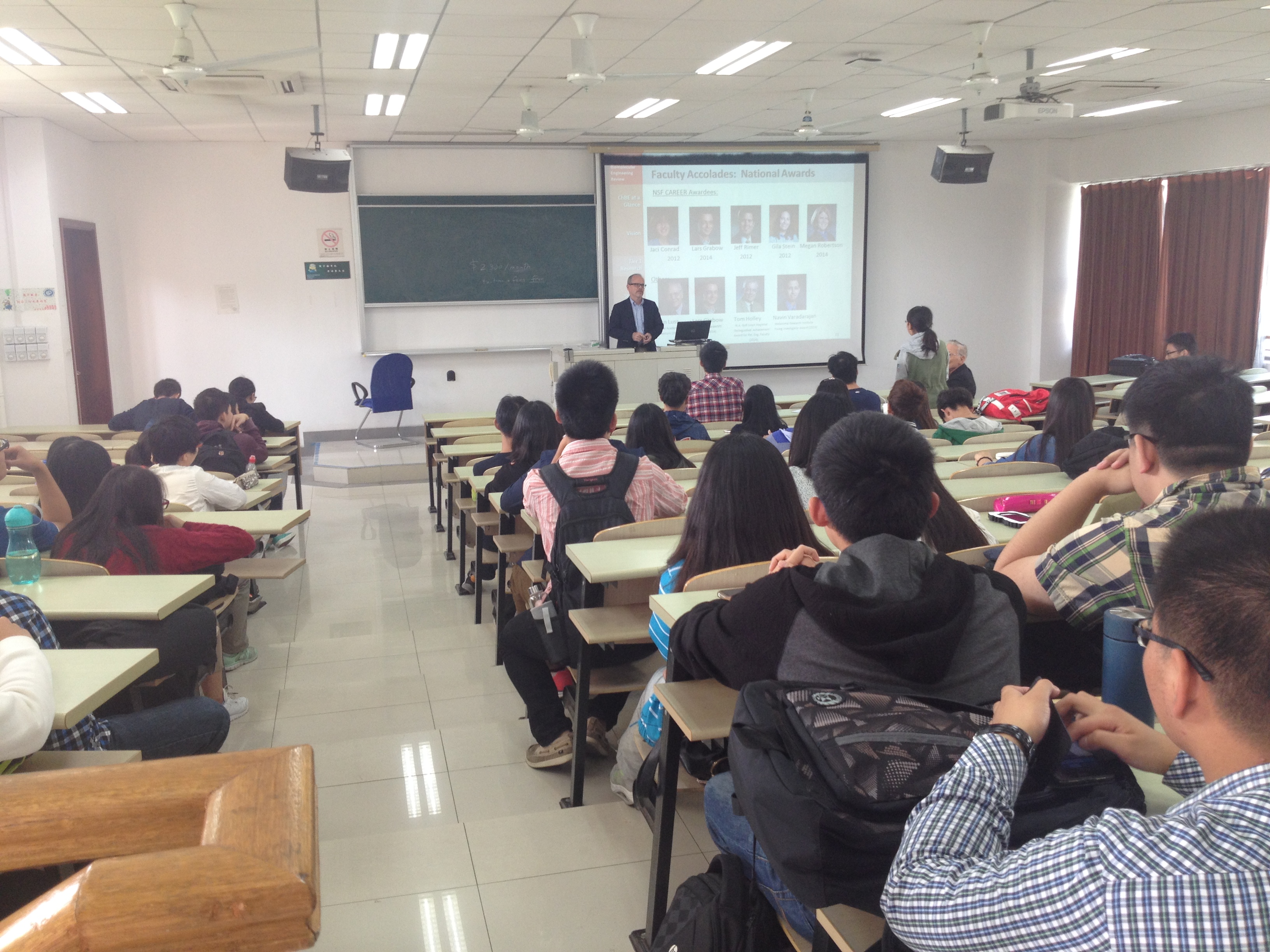 10月12日中午,美国休斯顿大学Michael P. Harold教授和Dr Dan Luss来到奉贤校区,于D教204为化工学院大一至大三学生介绍两校合作交流项目信息。化工学院近80名学生参加了此次见面会。