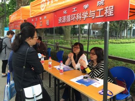5月14日上午,华东理工大学校内高招咨询会在徐汇校区举行,化工学院开设的化学工程与工艺专业、轻化工程专业、油气储运工程专业及资源循环科学与工程专业的系主任和专业教师参加招生宣传会,接受考生及家长的咨询。