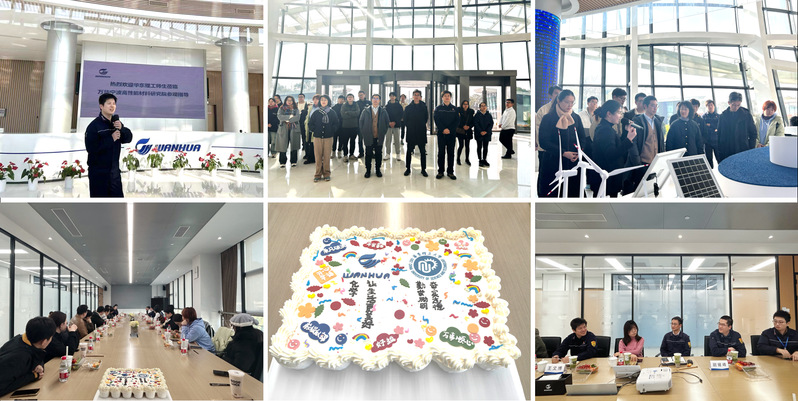 第二站,师生来到万华宁波高性能材料研究院,参观了万华宁波研究院极具创意的建筑外观、整体功能布局及研发成果展示,全面了解万华化学立足绿色石化和科技进步,稳步发展成为MDI高分子材料领域全球领先企业的发展成果。参观过后,研究院院长王文博等校友代表与师生进行了座谈交流。校友们详细地介绍了所从事的工作情况,以及毕业后的体会心得,并耐心解答学弟学妹们的问题,提出真诚而宝贵的求职建议。