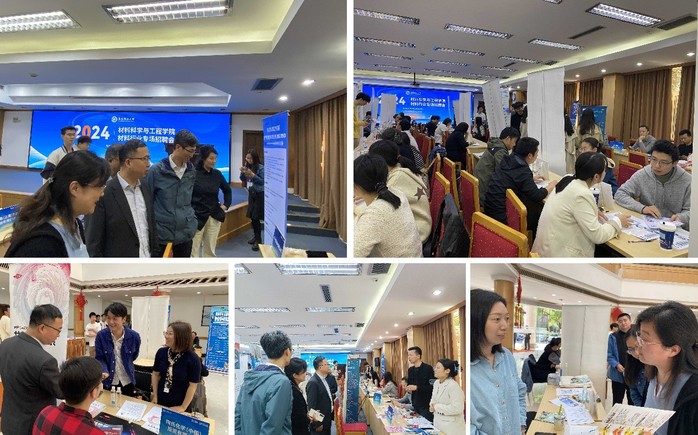 为拓展2024届毕业生就业渠道,搭建供需交流平台,4月18日下午,材料科学与工程学院在徐汇校区逸夫楼演讲厅举办第十三届材料行业专场招聘会。学院党委书记袁媛、院长杜建忠、学院党委副书记兼纪委书记苏建玲、学院党委副书记戴诚安来到现场指导工作,并与用人单位、求职学生深入交流。