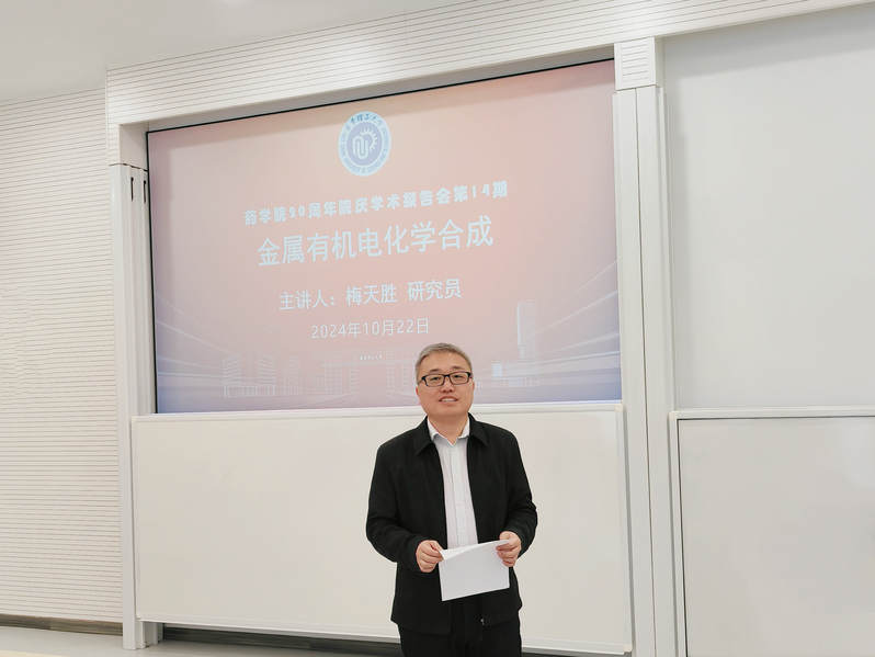 10月22日,药学院邀请中国科学院上海有机化学研究所梅天胜研究员为学院师生作“金属有机电化学合成”主题学术报告。报告会由学院副院长马磊主持。