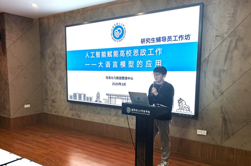 为深入贯彻落实全国教育大会和学校第十二次党代会精神,引导广大研究生辅导员深刻领会《教育强国建设规划纲要(2024-2035年)》的决策部署,全面推进人工智能技术赋能高校思想政治教育工作创新,3月25日下午,党委研究生工作部组织新学期第一期“研究生辅导员工作坊”在商学院大楼111室举办,邀请我校信息化与数据管理中心沈斌老师担任主讲嘉宾,各学院专兼职辅导员参与学习研讨。