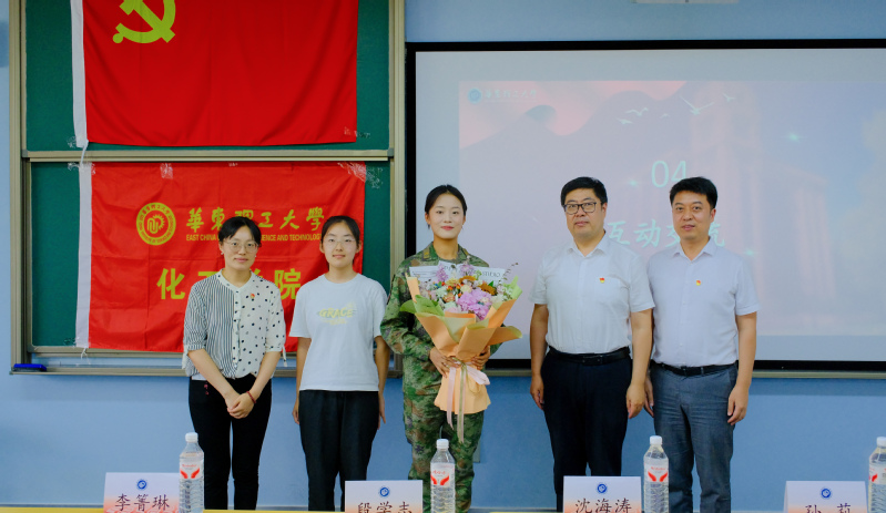 为深入学习宣传贯彻习近平新时代中国特色社会主义思想,纪念中国人民抗日战争暨世界反法西斯战争胜利80周年,激发青年学子爱国热情与报国志向,9月9日下午,化工学院在奉贤校区C201室举行“执青春之笔,绘强军画卷”国防教育主题党课暨阅兵故事分享会。校党委副书记沈海涛,化工学院党委书记段学志、党委副书记兼纪委书记孙莉出席活动,化工学院辅导员、学生党员和入党积极分子代表共计100余人参会。活动由孙莉主持。