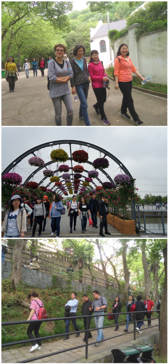 教师们集中乘大巴前往目的地,一路欢歌笑语。首先抵达云间九峰之首的西佘山。西佘山上不仅有宋代始建的秀道者塔,还有天文博物馆和天主教堂。大家拾级而上、登高远眺,饱览沪上美景。