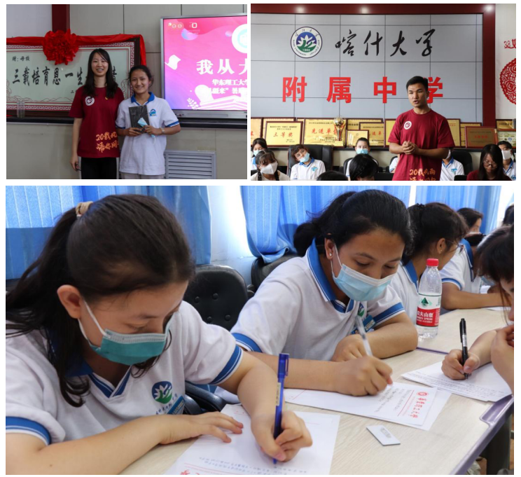 7月18日,实践团前往喀什大学附属中学,开展“我从大学来”短期夏令营,与喀大附中学生代表交流了大学生活、实践经历,共享了语言学习方法,激发了少数民族同学对未来的憧憬和向往。外语学院与喀大附中达成一致,共建长效沟通机制,由华理外语学院优秀学子与喀大附中学生代表形成一对一帮扶机制,促进两校情谊长存。来自克拉玛依市德语201班的姚墨雪同学、喀什地区生工192班的帕海丁·艾海同学分别讲述了自己从西部到上海的成长经历,希望同学们珍惜国家政策为少数民族学生提供的机会,努力实现梦想,助力家乡发展。团队成员鼓励当地学生将自己对未来的梦想与困惑在“与你‘语’见疆来”书信活动中记录下来,未来,这些书信将由华理青年写下回信,跨越数千里,架构起“上海——新疆”交流学习的桥梁。夏令营结束后,来自喀大附中的高2020级4班的地里夏提同学说:“之前想高中毕业之后就辍学创业,但在听完哥哥姐姐们的讲述之后,我下定决心一定要考大学,在完成学业后,以更好的自我迎接未知的挑战!”