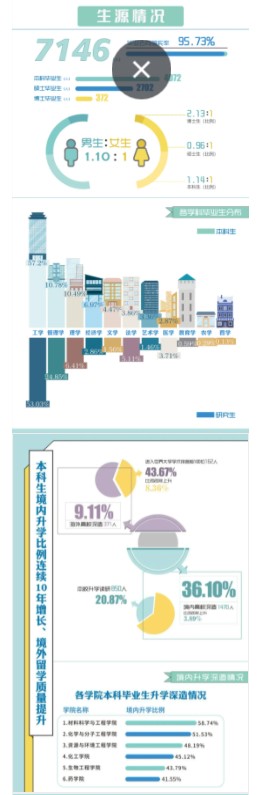 华东理工大学发布了2021年毕业生就业质量报告,本届毕业生共7146人。本科生境内升学比例连续十年增长,近6成毕业生集中在制造业、IT业及科研技术服务业。