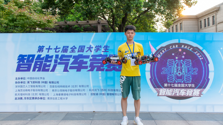 大三时,褚世旋作为负责人,开展了智能车和水面垃圾清理器项目研究。在竞赛中,他主动学习图像处理、GPS与陀螺仪模块的使用,进一步改进了无刷电机的控制方案,设计了多传感器融合的控制方案。为了寻找适合智能车实验的场地,他独自在烈日炎炎的操场上奔跑,观察智能车行动轨迹并不断改进。最终,褚世旋带领团队在第十七届全国大学生智能车竞赛中取得极速越野组华东赛区第一名、全国三等奖的优异成绩。说起为了智能车拼搏的日日夜夜,褚世旋至今都记忆犹新,“只能通过一次次测试,让系统一点点完善起来,要学的东西也越来越多,但我很享受这个学以致用的过程”。