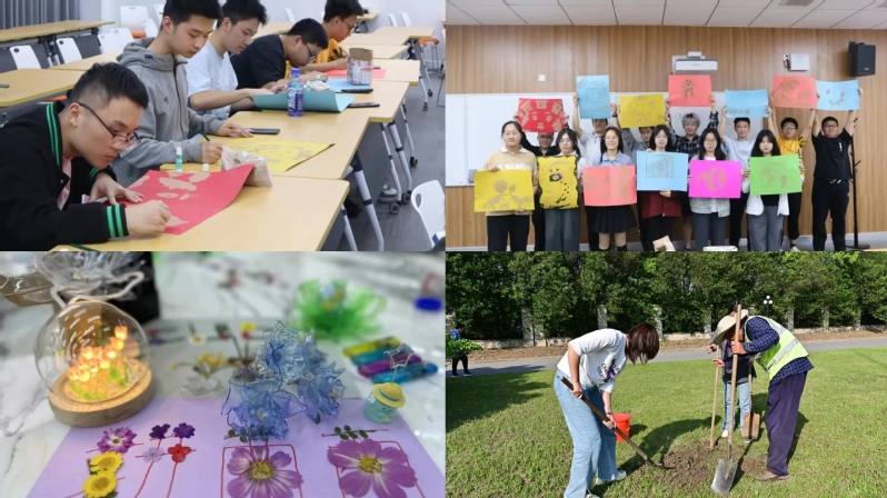 为推动美育浸润与劳动教育,结合5月学院“心理健康文化月”系列安排,开展“巧手绘沙,觅绿于荒”沙画绘画、“花叶入画,塑‘植’留春”手工艺品制作等艺术实践普及活动和“固‘土’培元,共‘树’未来”种树培花劳育实践。利用“垃圾银行”活动收集的废旧塑料瓶进行再创作,引导同学们培养审美素养和创新意识,在劳动实践中体会生态环境之美。